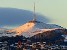 The Sugarloaf in Christchurch's Port Hills is a landmark to the south of the city. The Sugarloaf communications tower is an iconic transmission mast located on top of the hill. The tower is situated at an elevation of 493.78 m on the top of the Port Hills, near Dyers Pass. With a height of 121 m, the lattice steel structured tower is founded on a 5 metre deep concrete pad underlain by basalt volcanic rock. It is situated approximately 50 m behind the main transmission building, which combined with the tower is visible from most parts of Christchurch city.